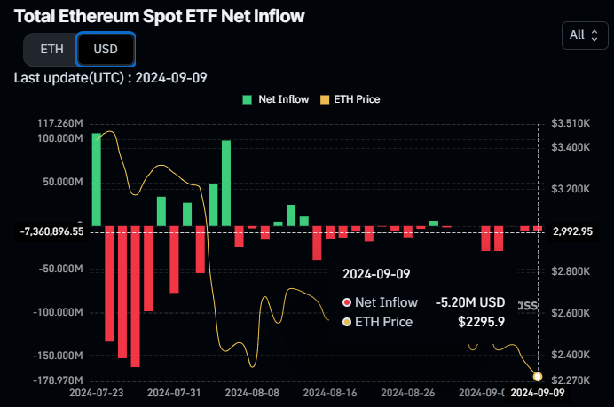 US Spot $ETH ETFs registered -$5.2m in net outflows yesterday
