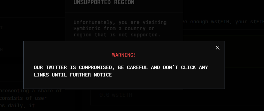 Symbiotic X account is exploited. DO NOT INTERACT WITH ANY LINKS