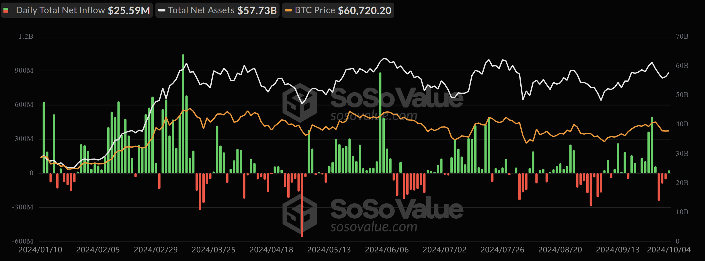 US spot $BTC #ETFs saw +$25.5M in net inflows on Friday