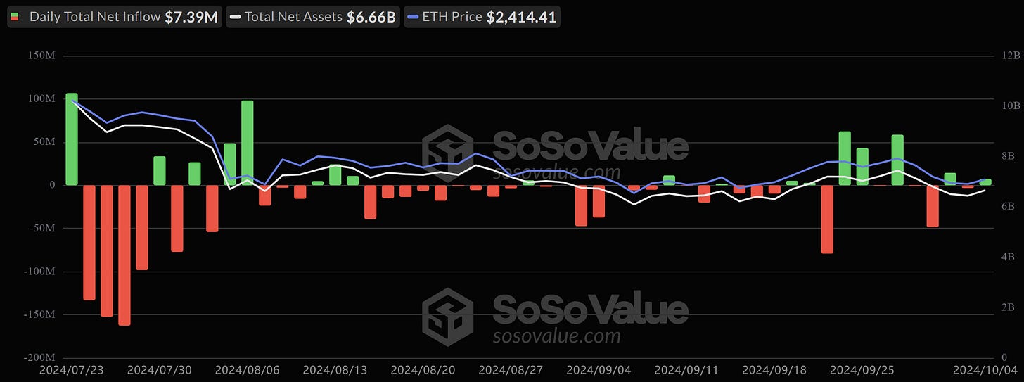 US Spot $ETH ETFs registered +$7.4m in net inflows on Friday